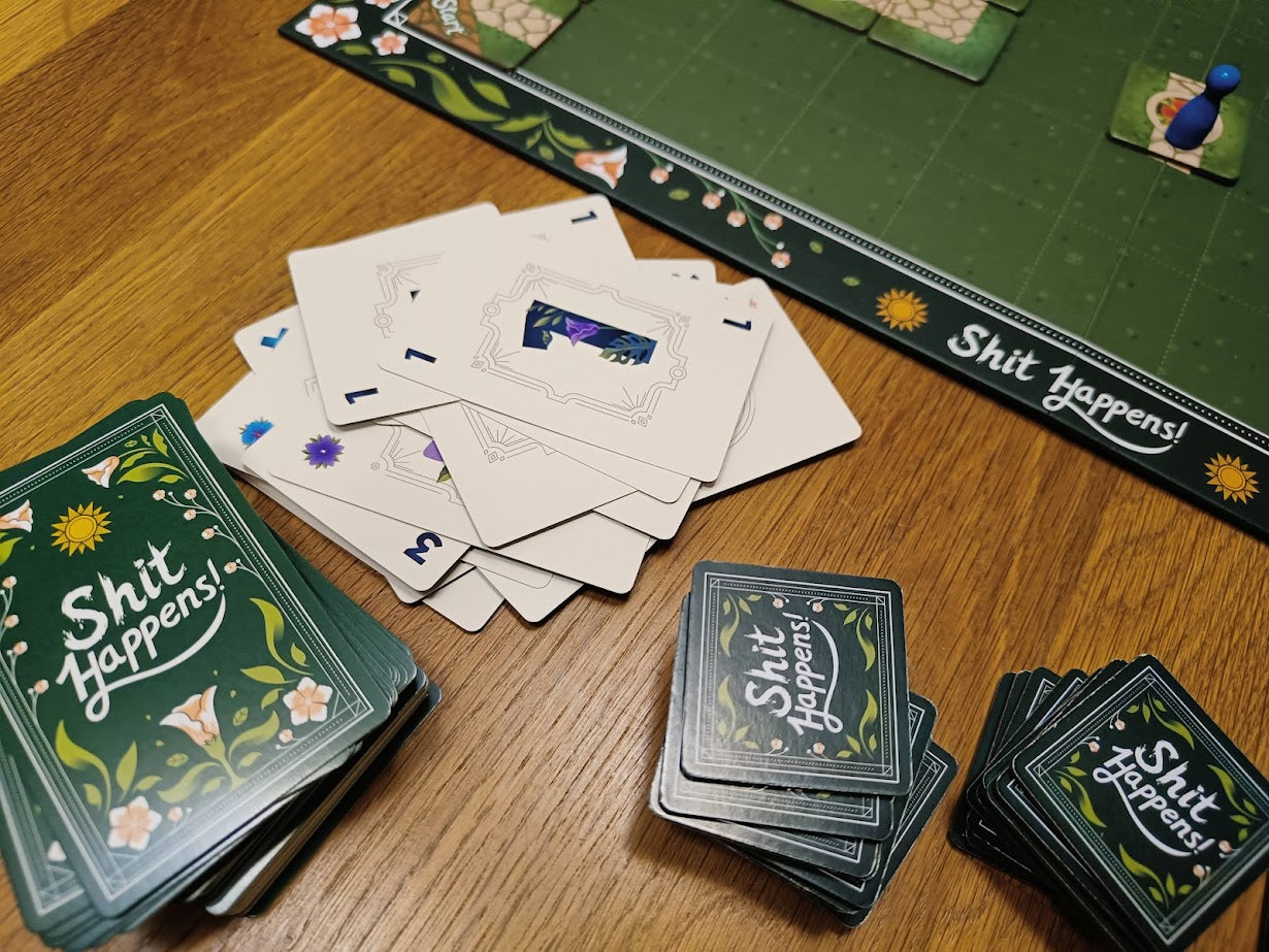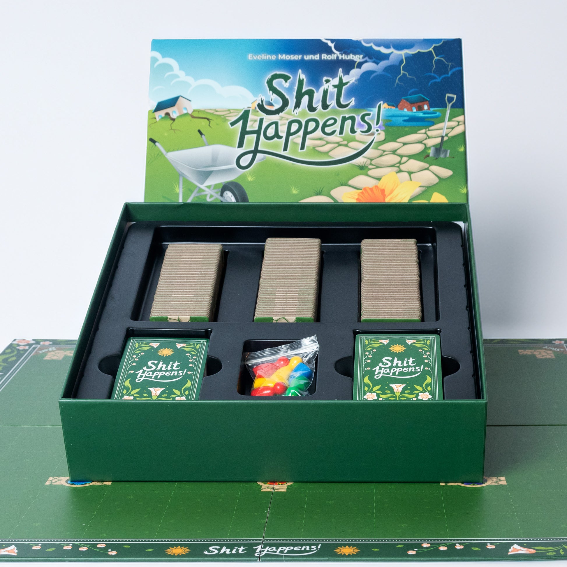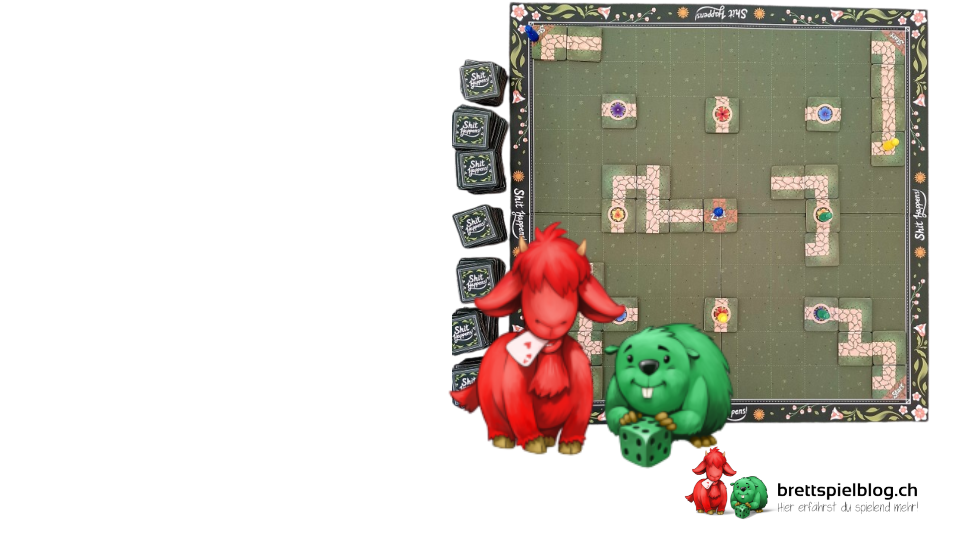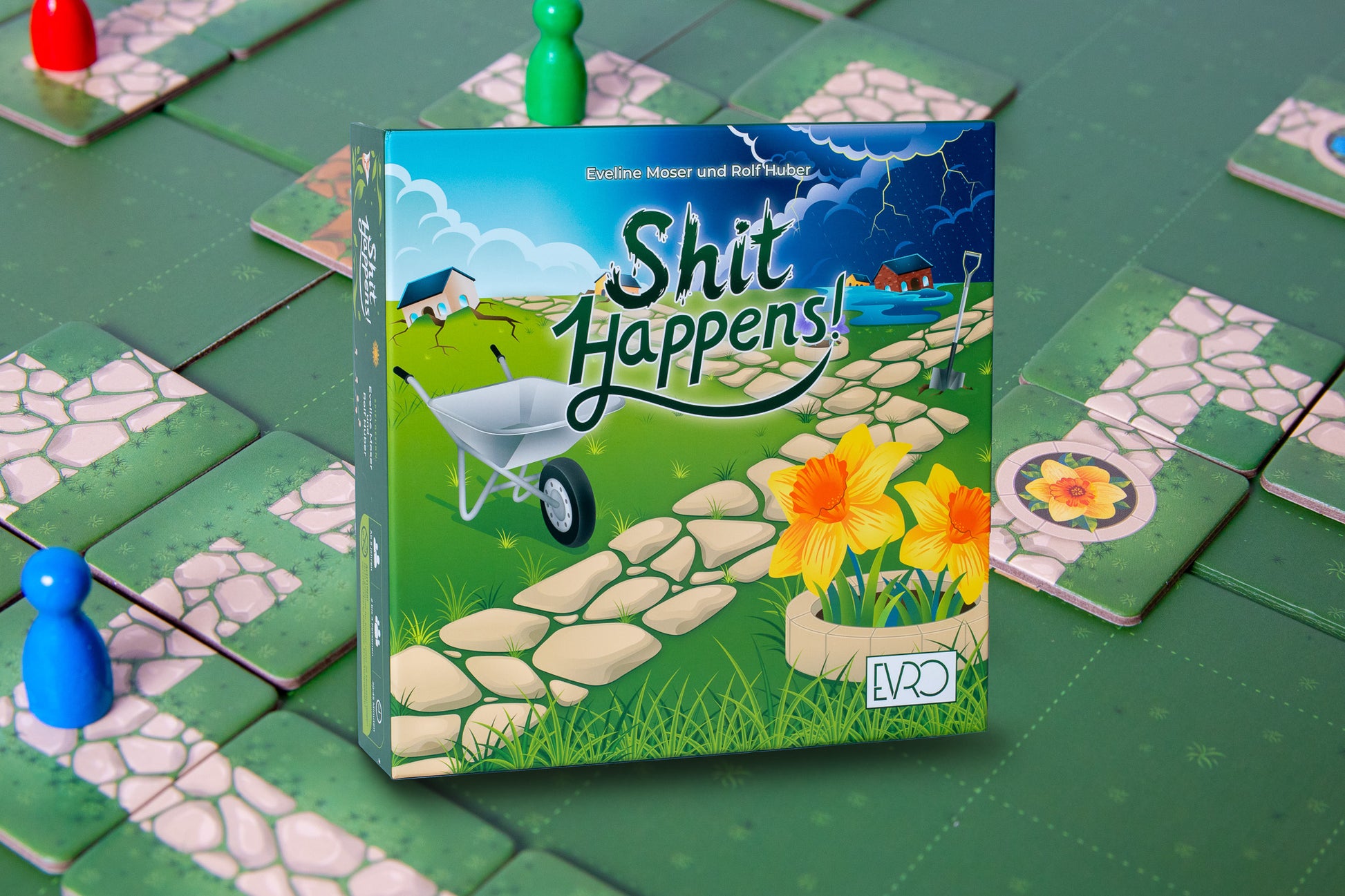 "Shit Happens! ist ein überraschend starkes Erstlingswerk aus einem Schweizer Eigenverlag, das mit hochwertigem Material und einem cleveren Legespiel-System überzeugt. Der Einstieg ist leicht, denn die Regeln sind intuitiv und Legespiel-Fans finden sofort hinein. Doch dank Blumenfeldern, Wertkarten, Erdbeben, Überschwemmungen und Abblockern entwickelt sich schnell ein taktisches, manchmal fieses Gerangel um den besten Weg ins Ziel. Die Aktionskarten sorgen dafür, dass nichts sicher ist und man sich ständig an neue Situationen anpassen muss. Insgesamt bietet Shit Happens! ein flexibles, spannendes und qualitativ hochwertiges Spielerlebnis, das locker mit Titeln grosser Verlage mithalten kann."