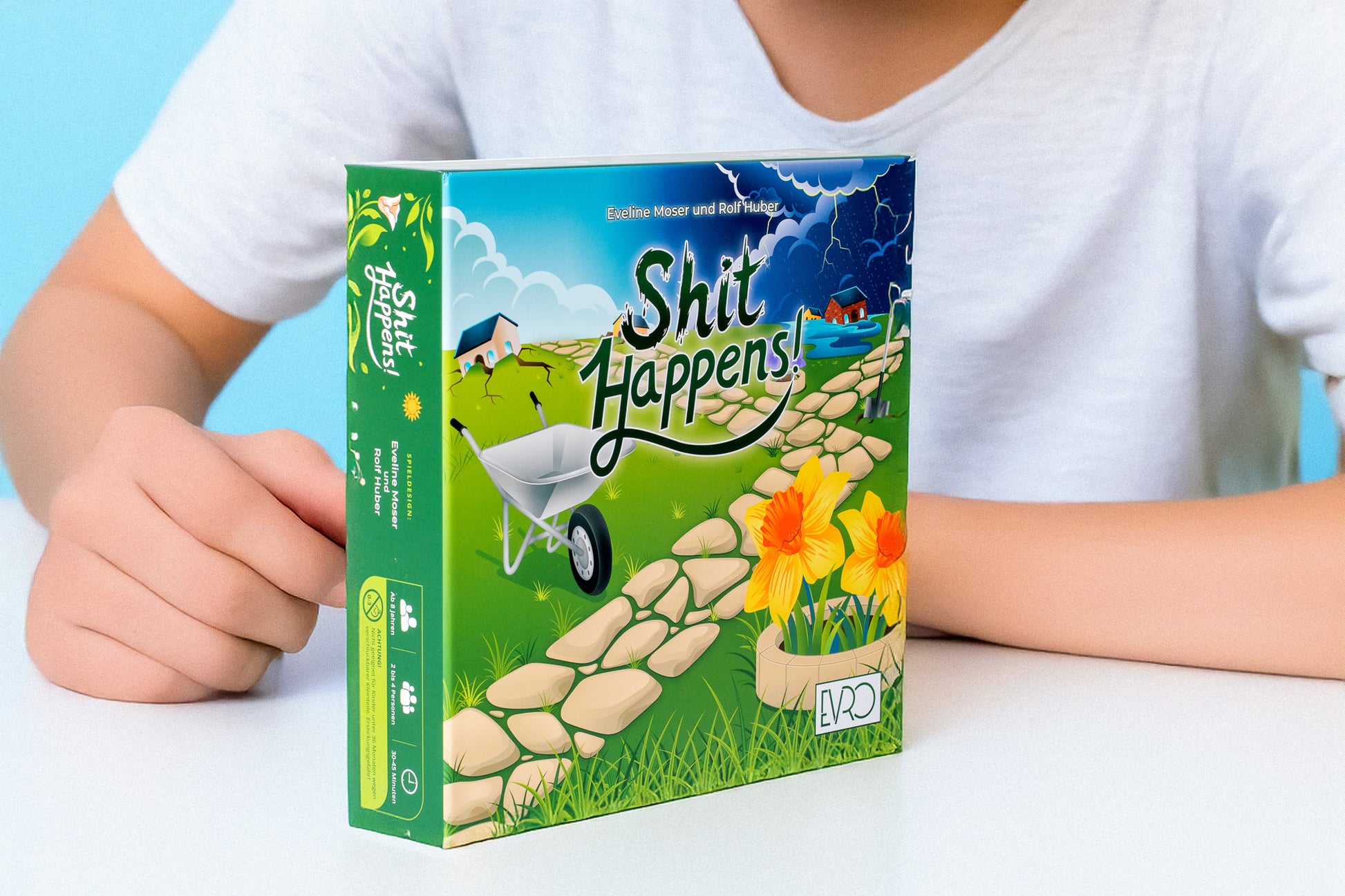 EVRO presents Shit Happens!, a brand new, chaotic cooperative board game at BasGame! Together, you lay a path to the goal - but earthquakes, floods, and other disasters cause real team chaos. The game is full of suspense, surprise, and humor. Shit Happens! can be tested directly on site - because when everything goes wrong, that's when it gets really funny! EVRO will also be showing the new Fortuna prototype for the first time.