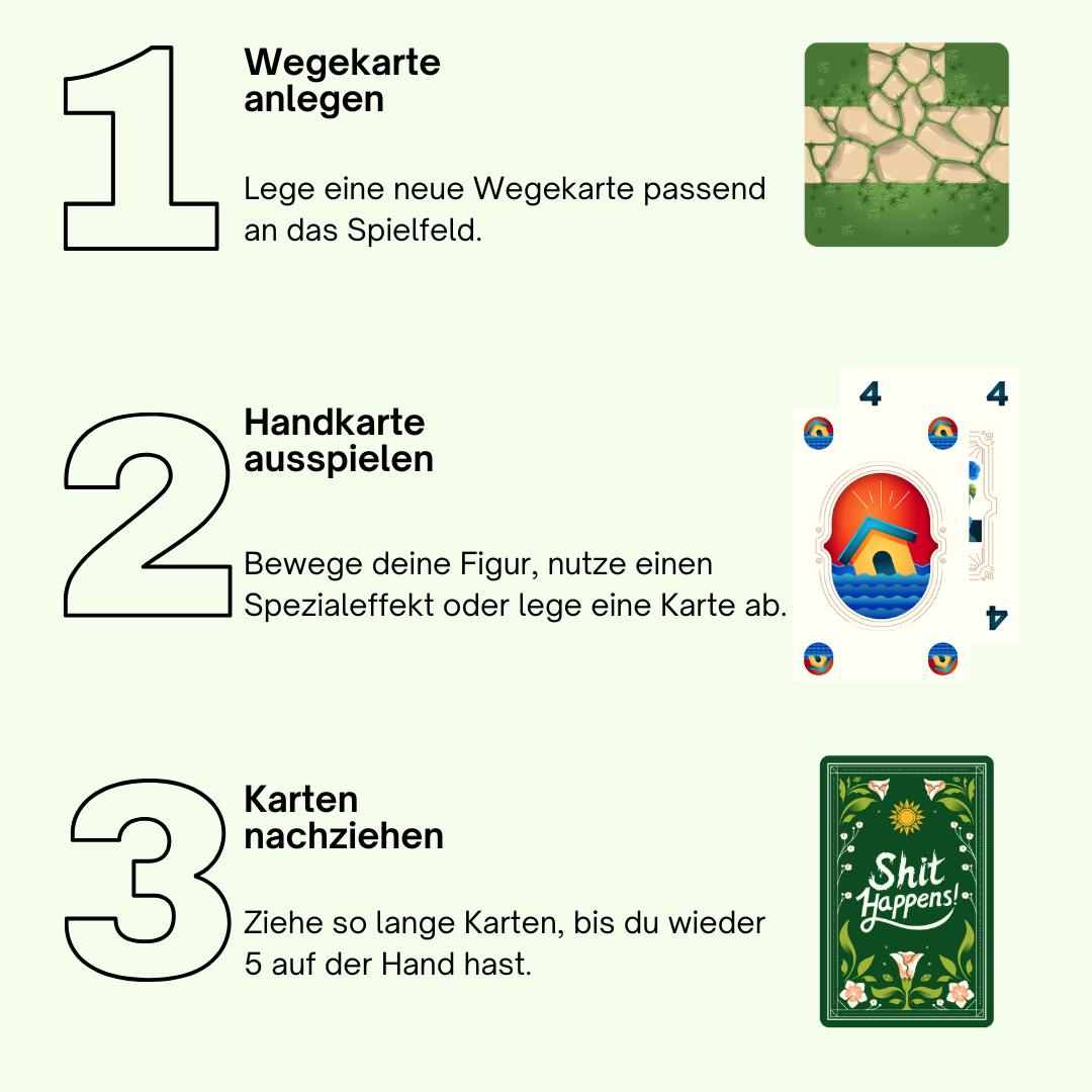 Die Regeln von Shit Happens! sind schnell gelernt, doch das Spiel bietet echte Tiefe: Taktik, Teamkoordination und überraschende Wendungen fordern euch immer wieder heraus. Leicht zu lernen, schwer zu meistern – genau so soll ein gutes Spiel sein.